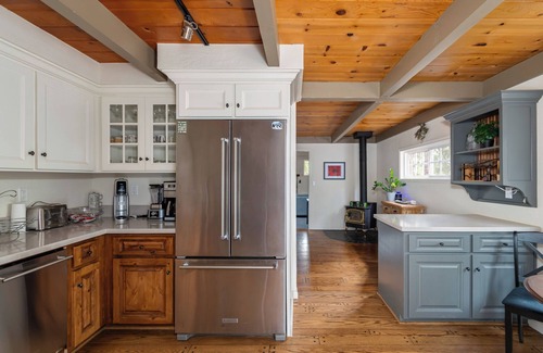 Welcome to Fernwood, an adorable and updated Blue Lake Springs cabin that’s ready to be your home base for your next adventure in the Sierra! With 3 bedrooms, 2 full bathrooms, and a loft, there’s room for up to 8 guests to enjoy this charming and cheerful retreat. The main floor includes the great room with vaulted ceilings and a fireplace, the dining room, fully stocked gourmet kitchen, 2 bedrooms, and a full bathroom/laundry. Upstairs is the 3rd bedroom and loft along with the second full bathroom. Enjoy outdoor living at its best with three deck options: a large main deck, a cozy side deck, and a roomy upstairs deck, perfect for soaking up the mountain air. Stay comfortable year-round with mini-splits in the bedrooms for air and heat. The level driveway offers easy year round access and plenty of parking. Enjoy summertime access to Blue Lake Springs rec center with 2 lakes, swimming pool, tennis/volleyball/basketball and so much more (guest fees apply). You’ll also be in close proximity to all our area has to offer including Bear Valley Ski Resort, Big Trees State Park, the Arnold Rim Trail, as well as wine tasting, shopping, dining, hiking, and more!