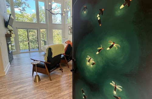 NEW! Private home nested 30 ft in the trees on Beaver Lake with boat access, hot tub, and full amenities. The Firefly provides an extremely unique, luxury treehouse experience with local art, modern amenities, a king bed, fireplace, and stackable washer/dryer. Immerse yourself into an abundance of nature, a forest of fireflies in the summer, outdoor BBQ and firepit, and so much more.
