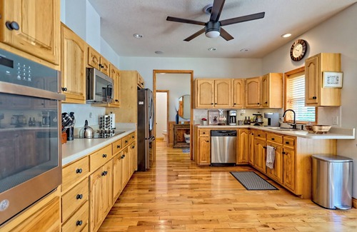 Kitchen: Granite countertops, new appliances (including dishwasher), fully stocked for cooking