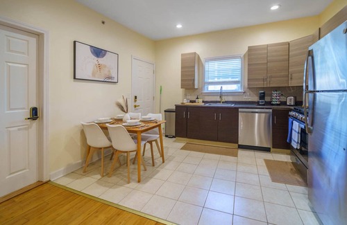 This open and airy guest suite boasts three bedrooms, one bath, an open concept eat-in kitchen, and all the amenities you need when you visit Boston; air-conditioning, central heat, smart televisions with streaming services in every bedroom including the living room, wi-fi, and on-street parking.