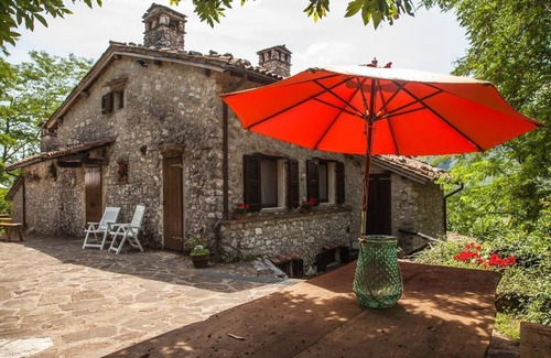 In 1998, we transformed a typical Garfagnana farmer's house into four comfortable flats, maintaining the style typical of the Garfagnana. The house where the farmer and his family lived has been converted into Capanne1 and Capanne2. The stable for the cows and bulls in Capanne3 and the barn, detached from the house, has been transformed into Capanne4. The structure, completely made of stone, is located at an altitude of about 600 metres and offers a splendid view of the wooded mountains of the Apuan Alps. It is a small paradise from which to visit the famous Grotta del Vento (Wind Cave), hike the most beautiful peaks of the Apuan Alps or simply relax by the pool in summer or in front of the fireplace in winter. Gallicano, the first town of reference, is 10 km away, Castelnuovo Garfagnana is 15 km, Lucca is 45 km away, while Florence and Versilia (Viareggio and Forte dei Marmi) can be reached in an hour and a half by car. Definitely not to be missed is the famous "Grotta del Vento" (Wind Cave): located in the centre of the Apuan Alps Natural Park, it is among the most complete caves in Europe, presenting an extraordinary variety of phenomena that are illustrated with precision and competence by expert speleological guides. Each flat is well furnished, with a private terrace and completely independent entrance. The terraces are equipped with rustic wooden tables and are perfect places to enjoy meals while gazing at the magnificent panorama. The flats have their own gas heating system and typical wood-burning fireplaces. During the winter, gas consumption must be paid for along with any firewood used. The flats are very comfortable and furnished with abundant use of wood, providing an atmosphere of refined taste. The renovation was carried out with great care, respecting the typical architectural style of this area with wooden beams on the ceilings, white rustic-style walls and terracotta floors. In some cases, the interior wooden ceilings are original as well as some stonework. There are two baby cots available upon reservation and also a washing machine for guest use. The flats have satellite TV. Capanne3This flat is on a lower level of the farmhouse and is accessed from the garden on the right following a short path to the private terrace. Through a small courtyard, one step leads to the entrance of the flat. Since the terrace is built on a ledge of the hill, it is protected by a wooden fence. The entrance is into the large living room where the living and dining corner is located. Here too there is a comfortable sofa bed and a characteristic Tuscan fireplace. In the dining area is the kitchenette equipped with a gas stove, refrigerator and oven. In front of the kitchen, up a few steps, a door leads to the small horseshoe-shaped courtyard. To the left of the kitchen, up one step, there is a short corridor onto which opens the door to a single bedroom and, up another step, at the end of the corridor there is a bathroom with laundry, toilet and a shower niche. To the right of the fireplace four steps lead to a small space onto which open the doors to a double bedroom, a single bedroom and a bathroom with shower. The twin bedroom has a French window opening onto the small courtyard. The flat is very comfortable, cosy and bright.Short descriptionOther : Non-smoking houseBrief description 1Total kitchens : 1SurroundingsSports facilities nearby : Climbing, Mountain biking, ClimbingGarden and outdoor spacesGarden equipment : GreenhouseAdjacent leisure facilities : Swimming pool