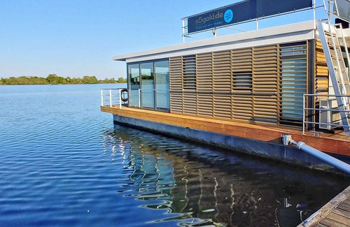 Layout and Equipment: Living & Dining: generous seating area with 3 seater corner sofa (leather), dining table with seating for 4 persons, sun protection Plisses Sleeping: 2 bedrooms with double beds (each 1.60 mx 2.00 m), darkening sunshade pliss kitchen : Ceramic hob, microwave with oven, dishwasher, refrigerator with freezer compartment, coffee machine, kettle, toaster, pots, pans, dishes, sink bathroom: shower & separate toilet with washbasin towel heating, hairdryer General: air conditioning with integrated hot air heating, satellite TV on flatscreen 100 cm diagonal, radio-CD player, Blu-ray player, W-LAN free of charge (about 2 MB) Outside: 15 sqm terrace at the bow, furnished; additional 25 sqm roof terrace, underwater light on the bow terrace parking at the port (about 30 m to the pier system) parking for bicycles or similar. on land (in a closed building) Other: Non smoking property The bed linen and towels are included. Specials: For this FLOATING you can rent 2 1-person kayaks on site.