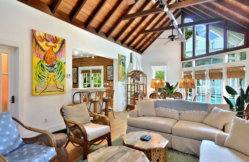 Amenities: Spacious tropical garden. Large 40' X 16' feet swimming pool (no heat, shared with two other properties - A Tropical Tradition and Coco's Poolside Retreat if they are rented at the same time). TV's, a/c, stereo, phone, washer dryer, linens and towels provided, fenced yard, large porches, two kitchens plus kitchenette.