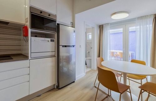 As you settle into this 2-bedroom, 1-bathroom rental, you'll find a dining area, air conditioning, and a desk. Connect to the WiFi, or get cozy in front of the TV. Bathroom amenities include a hair dryer and towels. The kitchen is equipped with a refrigerator and a dishwasher, as well as a coffee maker, a microwave, and cookware. And you won't have to pack extra clothes, because you'll also have access to laundry facilities. Other amenities include bed sheets, an ironing board, heating, and a desk chair.
