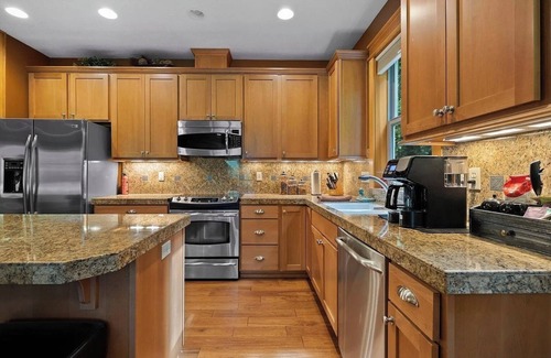 Welcome to Fox’s Den, a refined 2-bedroom, 3-bathroom villa overlooking the 7th green of Mt. Hood Resort’s Foxglove course. Perfect for couples, families, or friends, this retreat blends mountain charm with upscale comforts—from a private hot tub under the stars to exclusive resort amenities.