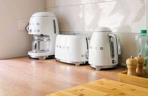 Francuska Deluxe Apartment features a stylishly designed living room with a kitchenette, equipped with a king-size bed and a fold-out sofa, a bathroom, and a separate toilet. Guests have access to a wide range of modern amenities, including free Wi-Fi, terrestrial TV, a washing machine, a refrigerator with freezer, a gas stove, an oven, a kettle, a dishwasher, drip coffee maker, a toster and full kitchen accessories. The apartment also includes an iron, a hair dryer, and a vacuum cleaner for added convenience.