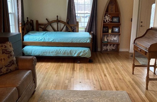 There is a boat/kayak launch a 5-10 minute walk down the street with access to the Chagrin River and Lake Erie. One tandem kayak is available for guests should you want to use it! Lifejackets and paddles included. Must sign a waiver to use kayak, adults only please. There is a wheeled dolly so you can walk it down to the launch area. Owner is a local real estate agent and can provide any information about the area you are seeking! This suite's entrance is in the rear of the home with a key lock. You will have to walk through grass to get to the entrance and up three somewhat uneven stairs. Owner travels a lot and may not be present during your stay. Two lay out chairs are in the back yard for your use along with the rear deck. Welcome to the Commodore's house!