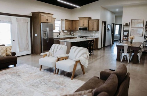 Escape to Freedom Quarters, your ideal short-term rental in the Missouri Ozarks—where stylish comfort meets peaceful countryside living. Located between Fordland and Rogersville, just 20 minutes from Springfield, MO, this serene farm stay offers the perfect mix of privacy, space, and convenience. Freedom Quarters is connected to a Farm Shop, but fully private.