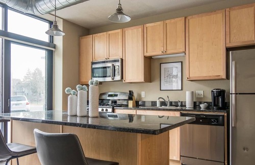 Frontdesk | Relaxing + Open 1BR Apt near Downtown is located in Downtown Minneapolis. Frontdesk | Relaxing + Open 1BR Apt near Downtown provides accommodation, featuring Kitchen, Laundry, Air Conditioner, among other amenities. This Apartment features Kitchen, Laundry, Air Conditioner, to make your stay a comfortable one.