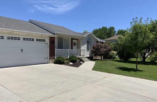This vacation rental home in Lehi, Utah is perfect for your next family getaway. The house has 3 bedrooms, 2 bathrooms, and an outdoor living space with a covered patio, fire pit, and playset. The property has a beautiful and fully equipped kitchen, in unit laundry machines, and access to the backyard. Enjoy comforts like wireless internet access and garage gym, when you are not exploring Thanksgiving Point, shopping, or just walking the path along the creek and frisbee golf course that runs behind the house.