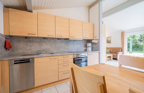In the free-standing gable roof house (approx. 62 qm) you live on one level. The house has two separate bedrooms, a living room, a kitchen with dining area and a bath room with shower and toilet. The house has an own terrace with garden and an parking space.