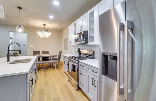 Whether you're tailgating for the Cowboys or chasing roller coaster thrills at Six Flags, this 5-bedroom, 3.5-bath Arlington vacation rental is your launchpad for fun. Located in the heart of the DFW Metroplex, the townhome puts pro sports, amusement parks, and live shows all within 5 miles. After the action, head up to the rooftop deck for cornhole and cocktails, or keep the fun going inside with a board game night.