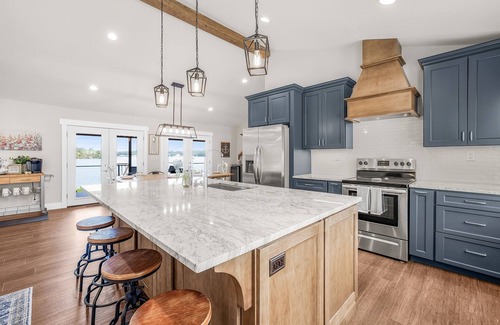 Blue Heron Hideaway blends luxurious comfort with endless lakefront adventure. This beautifully updated home sleeps 13 and features three king bedrooms—including two private king suites—plus two more cozy bedrooms, all with fresh linens and thoughtful design.