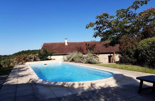 Accommodation: House of 137 m2 can accommodate 6 people with 3 double bedrooms + 1 dormitory for children under the attic with 2 beds 90cm with direct access to the bathroom, equipped and separate kitchen, dining room - living room with wood insert, 1 shower room on the ground floor, 1 bathroom upstairs, 3 toilets including 2 independents, 1 covered terrace, 1 fenced swimming pool (3m x 8 m - depth 1m80), 1 enclosed garden, 1 carport. Wood = 100€ m2 / stone and the first free flare. The bed linen rental also includes towels and a swimming pool towel.The price includes: Electricity up to 8kWh/day (beyond charging)Toilet towelsThe price does not include: The sheets 2 pers " optional 20 €1 pers sheets as an option 12€Optional wood 100€ per m3Household 130€ Nestled in the small hamlet of Lafage, overlooking the beautiful village of Beaulieu-sur-Dordogne, recognized among the most beautiful villages in France, this lovely house is ideal for a peaceful holiday. It has a warm living room with an insert fireplace, a beautiful covered terrace extending over a closed garden of 800 m2, as well as a fenced swimming pool with an alarm. Combining harmoniously the charm of the old and modern comforts, this cottage enjoys a soothing view of the fields and surrounding forests. Located at the end of the hamlet, it offers a perfect setting for relaxing moments, between barbecues and deckchairs around the pool. Price Includes: Toilet towels The Price Does not include: 2pr sheets as an option 20 €The sheets 1 next to "optional 12€Optional wood 100€ per m3Household 130€Overconsumption of electricity beyond 8KHWH/JOUR