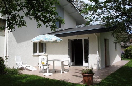 Gîte in the owner's house. Ground floor: living room-kitchen lounge area (1 double sofa bed 140x190 cm), 1 bedroom (1 double bed 140x190 cm), bathroom (shower) with WC. Large terrace, grounds and courtyard. Private parking for 1 car. Room for storing sports equipment. Superb contemporary style villa in the countryside of Aix. Quiet residential hamlet. Pleasant rural setting. Good comfort. Warm. Beautiful volume of the living room. Large exposed terrace of 21 m². Magnificent garden carefully landscaped and flowered. Unobstructed view of the massif.