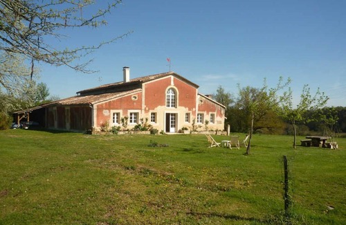 Nested between two hills, La Ferme Rose de la Romaningue is a 19th century renovated farm of typical architecture. This absolute haven of peace and silence is set between fields, vineyards and hills. With an equestrian center close by, it is surrounded by winegrowing properties and close to St Emilion, Bordeaux and numerous charming villages. This ground level 200 sq yds house, entirely redecorated in 2010, offers a vast and very light family room with central 18th century stone fireplace. 1 bedroom with en suite shower room/wc , 3 more bedrooms, 1 shower room, 1 bathroom with shower, separate wc. Large mezzanine on upper floor converted in relaxing area/play room. You'll be seduced by this charming house where everything has been thought out for a restful and relaxing stay.sheets rental available, house cleaning and heating in option. Kitchen linen and logs are provided for free.