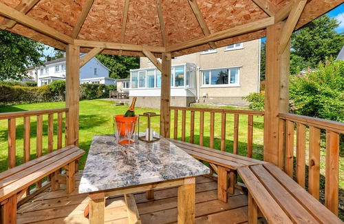 Outside : Secure, private rear garden with large lawned area which is positioned to take full advantage of the sun all day. Patio area with table and chairs for up to 6 people. Large timber arbour to seat up to 6 people, with marble table. Outside electric point and water tap. Charcoal BBQ. Small front garden and drive adjacent to a private no through road.
