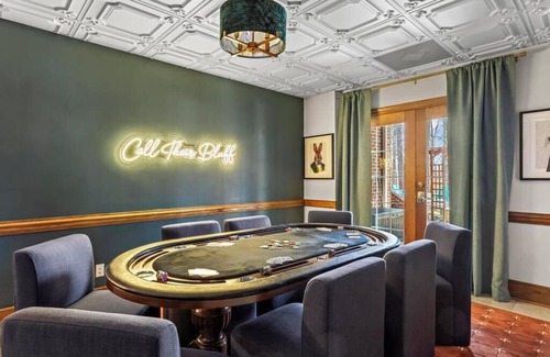 Enjoy endless entertainment with a poker table, pool table, arcade games, and a private hot tub. Whip up meals in the oversized kitchen, throw a movie night, or take the fun outside—complete with a large yard, firepit, string lights, outdoor seating, and space to unwind under the stars. Plus, you’ll have a washer and dryer, high-speed Wi-Fi, and plenty of parking.