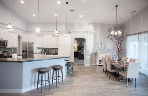 Relax, socialize, and enjoy the open floor plan with views of the lake, or retreat to your private Master Suite. The Master Bedroom has a king-size bed and flat-screen tv PLUS a gorgeous ensuite bathroom with a dual-head shower, and a huge soaking tub. The master bath is spacious, with double vanities and two large walk-ins. The 2 Guest bedrooms each have a queen-size bed and plenty of storage space. The 3 Guest bedroom has two twin beds. This home can accommodate 10 guests in bedrooms.