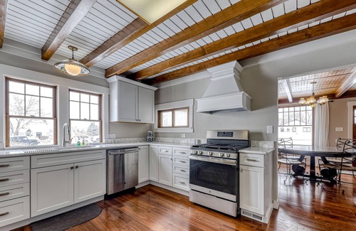 Return to your sweet getaway and fall in love with this home's quaint interior decor and feel. From the moment you step in through the front door, you'll immediately notice this vacation rental's spaciousness, with more than enough room to fit you and your friends. This 100-year-old historic house comes fully renovated with a brand-new kitchen, flooring, and bathrooms. With half an acre of land and wonderful pear trees to decorate it, you can sit out on the patio and gaze out at the rolling snowcapped mountains in the distance and breathe in the fresh, crisp air. Fire up the gas grill and play a game of volleyball using the included net while your meal sears to perfection. Eat outdoors or come inside and warm up with a hearty homemade meal to fill your belly. Afterward, settle down in the game room and challenge your friends to a couple of games of air hockey. End the night gathered around the living room area and stream your favorite movie right from the comfort of your couch. There's something for everyone here!