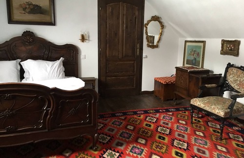 The house consists of two locations, arranged with old but well-maintained furniture, peasant carpets, showcases full of authentic old Romanian items (icons, old books, ceramics, folk costumes, old carpets and old fabrics) from all over the country.