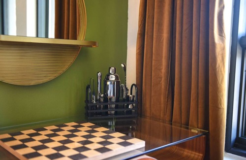 • Compact full bathroom – Rainfall showerhead, custom copper sink, plush towels, and premium toiletries