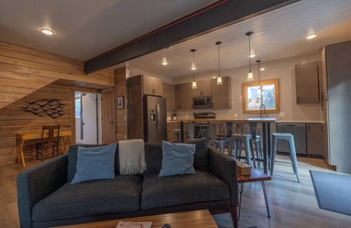 With shopping, beaches, boat launches, hiking trails and the Tart trail (Traverse Area Recreation Trail) close by, this home offers a great location to ensure that your stay in Traverse City is everything you planned it to be. The spacious bedroom suites allow for privacy when needed, the large kitchen and main living area offer a great place to cook and enjoy each others company, and for those that seek outdoor entertainment, the patio area offers a couple of different areas to lounge and recharge from the days activities. The patio space includes an outdoor fire place and a number of yard games that can be enjoyed by guests. This home offers year round accommodation as well as enjoyment for its guests, off season months can be enjoyable too, warming up with family and friends around the outdoor fireplace or gathering in the large recreation room to play darts, a friendly game of foosball, or watching a movie together.