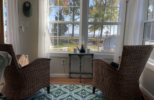 Bigger than it looks...says EVERY guest and they love the beautiful waterviews! This sunny, open house has guests enjoying the sunrise from the front deck. in 2014, this house went through a complete renovation..almost like new, All new plumbing, electric, layout...so almost a new house, but some nice older home charms. As you enter through the large front doors, you will want to relax on the sofas or comfy chairs in the livingroom and once again enjoy the views..keep going to the dining area that seats 6 to 8 with a French door out to a patio with BBQ grill...the fully equipped kitchen with island, dishwasher, microwave, stove, and refrigerator. The sunny livingroom greets you when you enter. The main house features 3 bedrooms; 2 with Queen size beds and one with 2 twins. The 2 bathrooms; one with shower/tub and the other is a walk-in showers. The house extends to a great space, almost like a guests suite with private the ability to slide the door door closed and has a wet bar, large great room, queen size bedroom and bath. For a total of 4 bedrooms and 3 bathrooms.