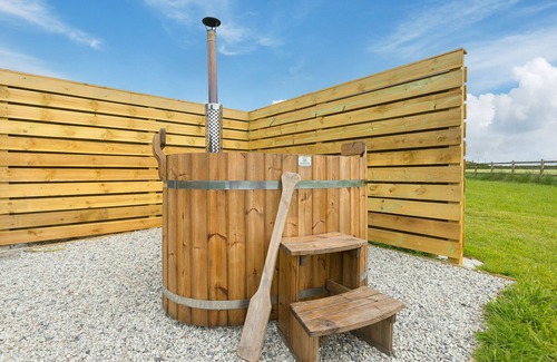 Amenities: Gas central heating with underfloor heating. Electric hob, combi microwave, Airfryer, fridge. Smart TV, WiFi. Fuel, power, and starter pack for wood fired hot tub inc. in rent. Bed linen and towels inc. in rent. Ample parking. Large enclosed garden with lawn, decking, gravelled area, wood fired hot tub, barbecue, and furniture. Sorry, no pets and no smoking. Shop and pub 0.8 miles, beach 2.3 miles. Note: There is a step up to the decking, and the pod is located on a platform, please take care