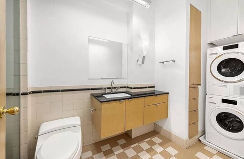 The bathroom offers the epitome of elegance and relaxation with a big glass shower. Custom-built pull-out medicine cabinets are an example of the thorough attention to detail in this apartment. Also, there is In-unit brand-new Miele Washer/Dryer.