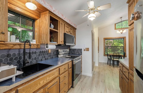 Discover a cozy one-bedroom, one-bathroom "treehouse" retreat just two minutes from Lake Glenville. Nestled on a quiet hill among lush rainforest trees, it features a spacious deck with a peekaboo lake view, a king bed, and a convertible twin/king daybed. Enjoy easy access to Signal Ridge Marina, public beaches and boat ramps, and the nearby resort towns of Cashiers, Sapphire, and Highlands, which offer dining, shopping, and events. Perfect for relaxation or adventure!