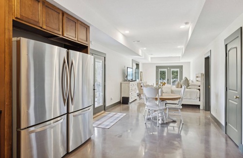 Welcome to the Guest Suite at Spruce Hill! Our guest suite is well-equipped for a relaxing stay in beautiful East Tennessee. Conveniently located just 5 minutes from McGhee Tyson Airport and only 10 min from Maryville, 15 min from West Knoxville, and 20 min from Downtown Knoxville. You'll find a stylish space with a private entrance, fast wifi, a full kitchen, cozy queen bed and a twin trundle bed, and a luxury bathroom with a soaking clawfoot tub and waterfall shower with 2 shower towers. The guest suite is located in the basement of our home, however, there is a private driveway and entrance, and you will have complete privacy during your whole stay. The interior is brand new as it was completed in 2024. Since we live on the upper 2 floors, you may occasionally hear footsteps and voices from one of our little boys running around. We will do our best to keep them quiet so they don’t disturb your stay.