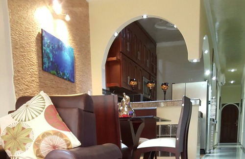1 Habitación con 1 cama de matrominio, con aire acondicionado baño privado (jacuzzi) en la habitación principal, sala, comedor, cocina totalmente equipada, zona de oficios,(lavadora secadora) tv Smart, aire acondicionado en la zona general, Wifi gratis, Estacionamiento gratuito.