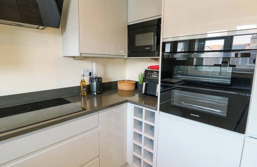 Amenities: Gas central heating. Samsung double oven, induction hob, microwave, fridge/freezer, washer/dryer, dishwasher, Ninja air fryer and blender, integrated breakfast bar wine chiller, kettle, toaster. 75" Smart TV with surround sound system, TV, Amazon Echo Studio Smart Speaker with Alexa within kitchen dining area, Amazon Echo dot smart smart speaker with Alexa within master and mid bedrooms, WiFi. Fuel and power inc. in rent. Bed linen and towels inc. in rent. Private driveway parking for 2 cars. Enclosed rear garden with patio, luxury 43mm artificial grass, furniture and mains Ninja Barbecue, woodfire, electric grill and smoker. Outdoor mains double socket available. Sorry, no pets and no smoking. Shop 0.1 mile, pub and beach 0.6 miles