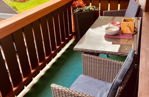 Spacious sun terrace surrounded by greenery. In the summer months there is a children's zoo in the garden and a large children's playground. In winter you can access the cross-country ski trail directly in front of the house. The ski bus also takes you directly from the flat to the Dachstein West ski area in 3 minutes.
