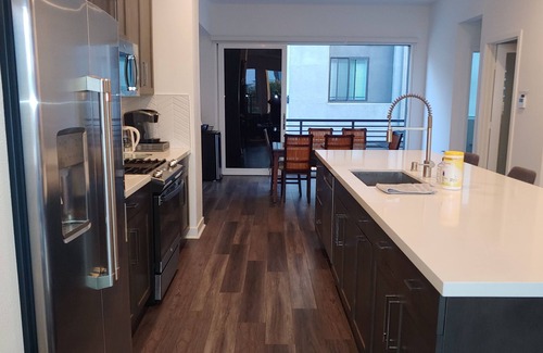 Luxury single family residence, the incredible kitchen has quartz countertops and huge refrigerator, 2 TVs and fresh vinyl flooring throughout. 3 Bedrooms are located on the 3rd floor, another master bedroom is the 4th bedroom on the ground floor with full bath. The rooftop deck is above it all with views and Short 5-10 min Uber to the Carnival, Viking, Princess and other cruise lines and walk to the new boardwalk. 2 car garage. Wonderful restaurants nearby and art galleries, coffee and tea houses and a few bars. Live music on some nights. Great for long stays.