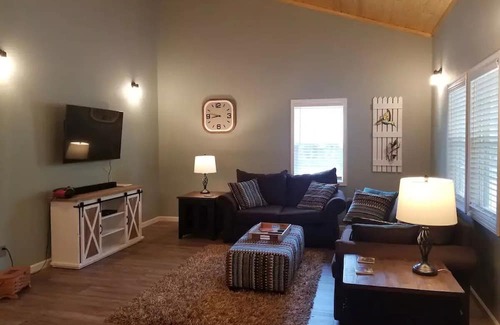 Forget your worries in this newly built spacious and serene space in a country setting. We are located 15 minutes from the Tennessee River (any boaters out there?) and Kentucky Lake and Pickwick Dam are close by as well. Boat/trailer parking is available on site. We are also a short drive from Chickasaw and Pinson Mounds State Parks, Shiloh National Park and K&M Shooting Complex. For guests with pets, we have a small, medium, and large crate for your use if/when pet must stay in the cabin without you.