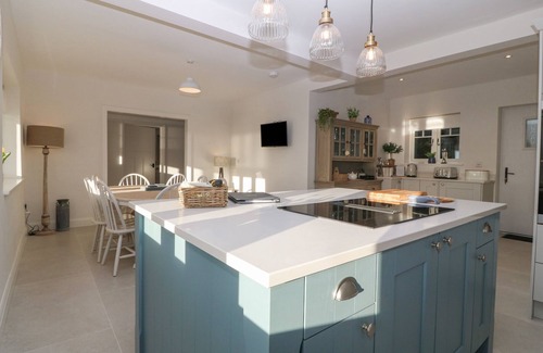 Amenities: Gas central heating. Double oven, electric hob with built-in extractor, microwave, fridge/freezer, washing machine, dishwasher, kettle, toaster. Smart TV, BT broadband WiFi. Fuel and power inc. in rent. Bed linen and towels inc. in rent. Travel cot (please bring own linens) and highchair available. Off-road parking for 1 car on driveway and 2 more cars to the left of the garden. Landscaped side and front gardens with hot tub and furniture. Sorry, no pets and no smoking. Please note: there is CCTV at the property for security purposes. Shop 0.6 miles, pub and beach 0.5 miles.