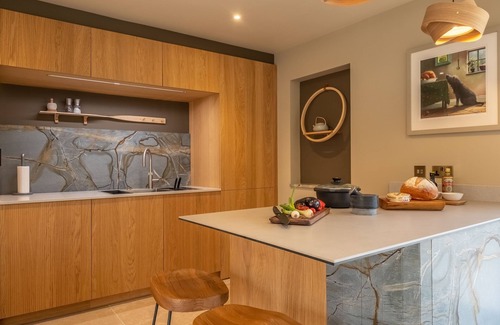 Constructed from brick and flint in the 1850s, Hayloft formed one of a small cluster of farm buildings. Converted in 2022, it now showcases beautiful natural features and character alongside superb craftwork, high-tech features, luxurious fixtures and fittings, and very subtle styling throughout, complemented by funky light fittings and striking artworks. Extremely spacious, featuring full length windows to all sides on the ground floor, natural light to floods inward from landscape views. Walk into the barn from the walled courtyard, through the fully glazed entrance, and you are greeted with a stunning double-height hallway leading to a large dual aspect dining kitchen and a stunning triple aspect sitting room. The state-of-the-art fully-equipped kitchen has Leicht cabinets featuring electronic touch opening, slide-away pocket oven housing Neff Hide and Slide ovens and an island that boasts revolutionary invisible induction 'chef's cook top' with intuitive touch control. The adjacent dining area looks out to the garden and fields beyond. Open the sliding doors to welcome outside in. Neighbouring the kitchen is a handy utility room offering a side door to the outer courtyard. The inviting sitting room has a very relaxing, comfortable vibe that encourages after dinner conversation and makes the ideal setting to nestle down to watch a film. Light the wood burning stove to elevate a cosy night-in during cooler months. A separate study/snug welcomes anyone in the party requiring a quiet space to read or work. Walk up to the first floor, via the hand crafted spindle oak staircase, and discover three sumptuous bedrooms; master super-king bedroom, a super-king bedroom with zip and link option to convert to twin beds, and a twin bed room. All bedrooms feature overhead twin electric Velux windows.Three very smart bathrooms service the bedrooms, two of which are en-suite.