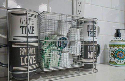 KITCHEN: Fully equipped w/ granite counters, breakfast bar, Keurig coffee maker, stainless steel appliances, toaster, cooking basics, knife set