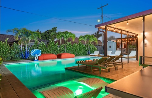 Heated Pool + Pergola + Bar | DT 5 mins | 1000Mbps | Villa in Hollywood, FL