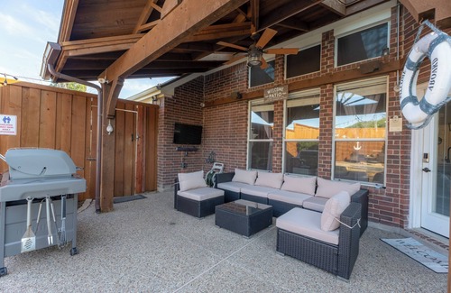 Get ready to relax in this 4-bedroom house in Frisco. This superb property offers a cozy and welcoming atmosphere for guests. With 3 king beds, 2 queen beds, and 2 full beds, a bunk bed, there's plenty of space for everyone to unwind. The house features modern amenities like WiFi, a washing machine, heating, a hair dryer, an iron, and AC. The 3 bathrooms are equipped with a bathtub, a hair dryer, and even a jetted bathtub for ultimate relaxation. Enjoy your time in Frisco at our charming house.