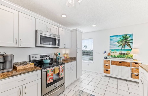 Create culinary masterpieces in a fully equipped kitchen featuring all the essentials, plus unique appliances like a milkshake maker and waffle iron. Sip your morning brew from the dual-function Keurig and savor meals at the dining table for six, set against an Insta-worthy mural. For a change of pace, dine al fresco on the porch or poolside.