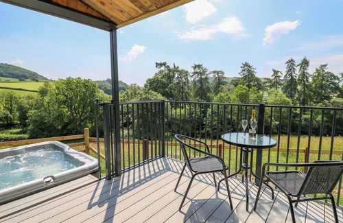 Amenities: Gas central heating. Electric oven and two-ring hob, fridge with ice box. Smart TV and WiFi. Fuel and power inc. in rent. Bed linen and towels inc. in rent. Travel cot available. Off-road parking for 2 cars. Enclosed garden with hot tub, decking, lawn, and furniture. One well-behaved pet welcome. Sorry, no smoking. Shop 1.7 miles, pub 1.8 miles. Note: Steps up to the cabin. Note: Please do not allow pets on the furniture