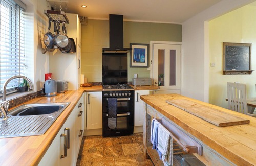 Amenities: Gas central heating. Electric double oven, gas hob, microwave, fridge/freezer, washing machine and tumble dryer, dishwasher, coffee maker, kettle, toaster. 4 x Smart TVs, Smart TV with Sky, Prime Video, Netflix, WiFi, a library area with a selection of books. Fuel and power inc. in rent. Bed linen and towels inc. in rent. Travel cot available. Public car park. Enclosed rear garden with patio, gravelled area and furniture. Rear balcony with furniture. First well-behaved pet welcome with two more at an additional charge of £10 per pet, per stay. Sorry, no smoking. Shop 0.4 miles, pub 0.1 mile. Note: There is restricted head space on the second floor. Note: starter pack for wood burner provided