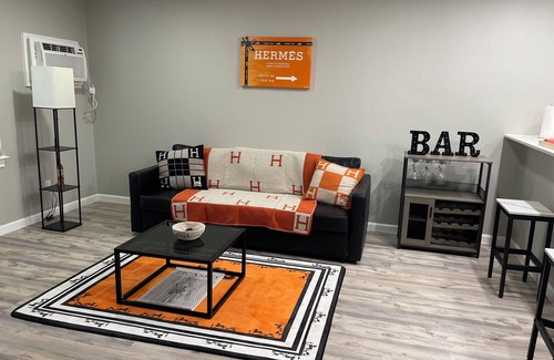Step into a world of elegance and luxury with our Hermes-inspired retreat. This chic, meticulously designed space combines timeless sophistication with modern comfort. From the signature orange accents to the stylish furnishings, every detail is a nod to the iconic brand. Whether you're unwinding in the plush living room or enjoying the upscale amenities, this unit offers a truly lavish experience. Perfect for those seeking both style and comfort in the heart of the city