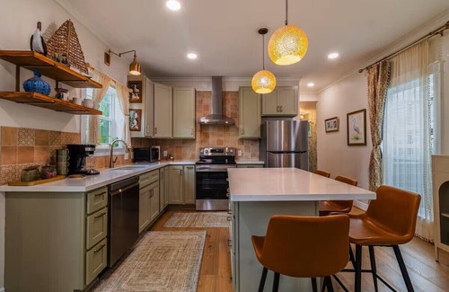 Discover this vibrant 2-bedroom, 2-bath home in Pensacola, filled with original artwork from local artists. With a queen size bed and a full size bed, a full kitchen, and a cozy living space, it’s perfect for up to 4 guests. Located near downtown and a short drive to the beach, you'll enjoy easy access to restaurants, shops, and galleries. Stay inspired and relaxed in this artistic coastal retreat!