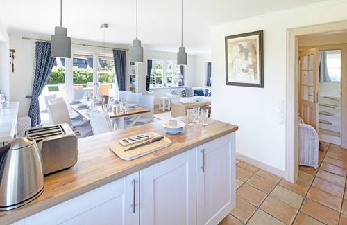 The house offers space for 8 persons. The sun-drenched living and dining area offers plenty of space to spend cozy hours in large or small groups. Enjoy the Sylt ambience in the beautifully landscaped garden. The Lister beach is in the immediate vicinity and within easy walking distance. 4 bedrooms are equipped with a double bed and one bedroom with a single bed (extendable to a double bed). Two sleeping places are in the annex with its own bathroom. Two more sleeping places are in the basement.
