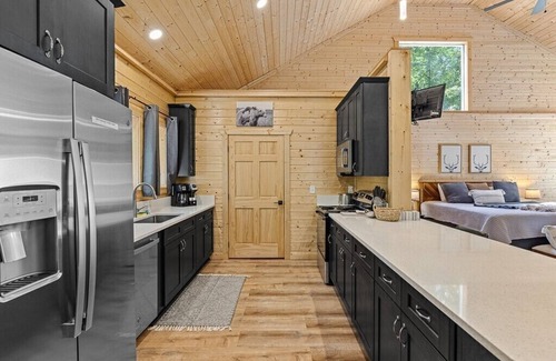 Hidden Jewel is ideal for couples seeking a peaceful, romantic retreat away from the hustle and bustle. This cozy cabin blends modern comforts with farmhouse charm, featuring an open floor plan, fully equipped kitchen, infrared sauna, two person indoor jacuzzi, luxurious shower, hydrotherapy hot tub and new king-sized bed with Westin style mattress.