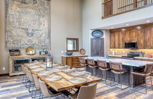 An impressive kitchen and dining space allow guests to prepare meals for large groups with ease. Guests have the option of using the kitchen stove or large BBQ grill and extra large flat top grill to tackle meals.
